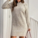 Fashion Lace Spliced Crew Neck Side Button Long Sleeve Knitted Dress