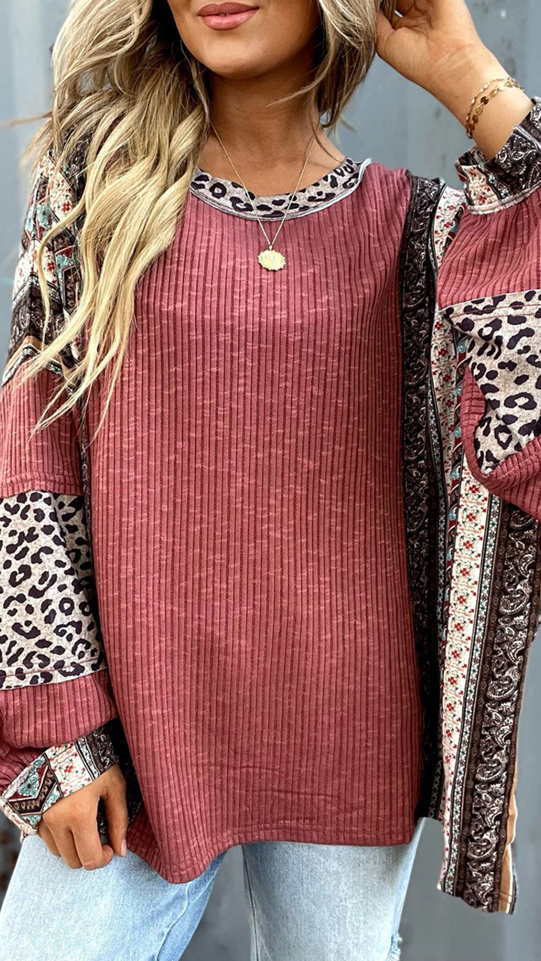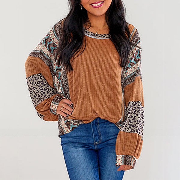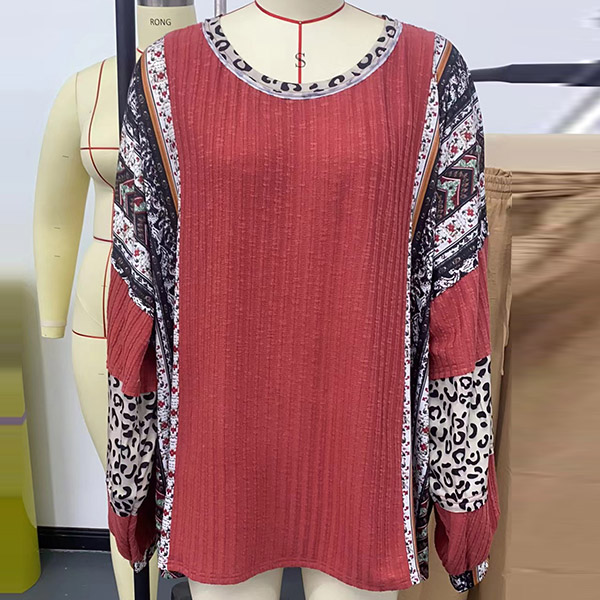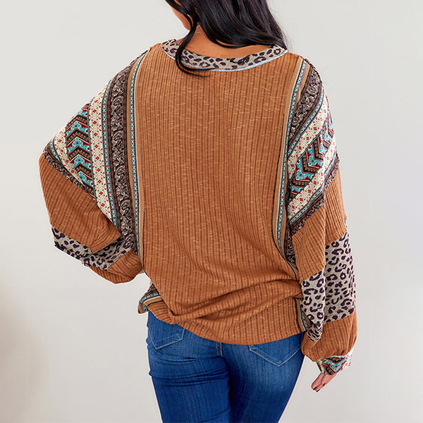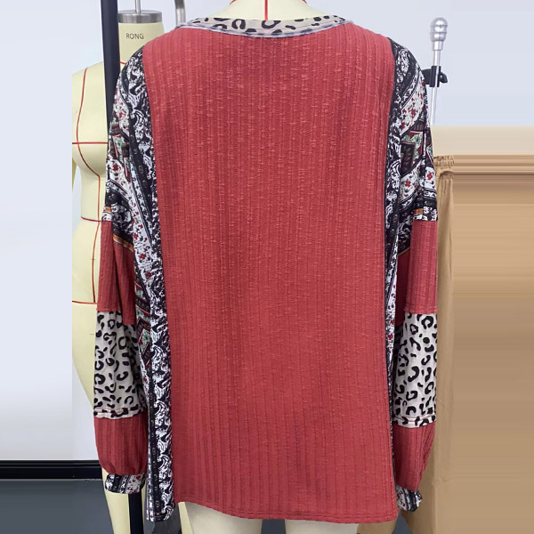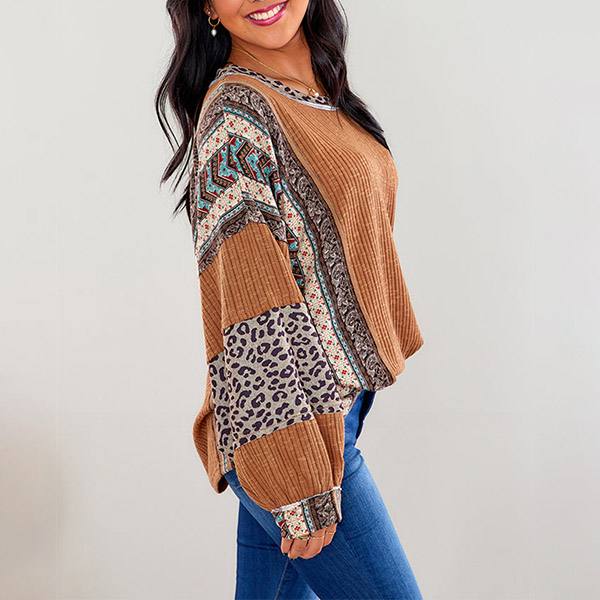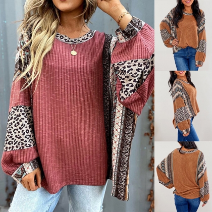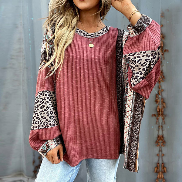 Fashion Contrast Color Printed Crew Neck Long Sleeve Shirt