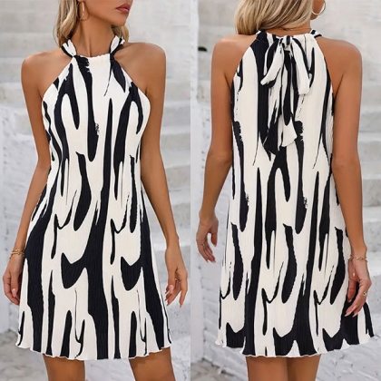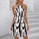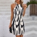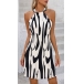 Fashion Contrast Color Printed Halterneck Sleeveless Mini Dress