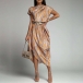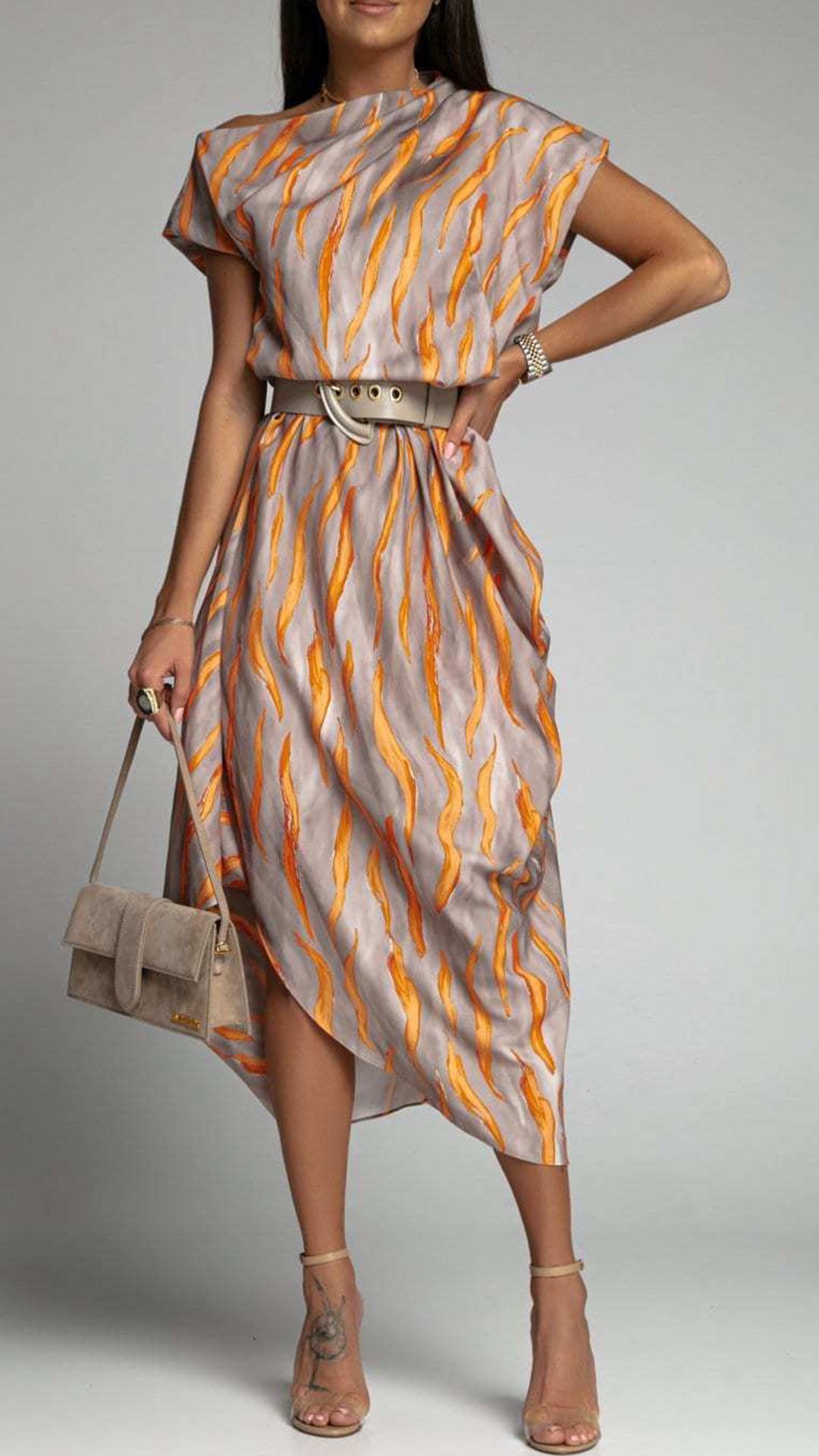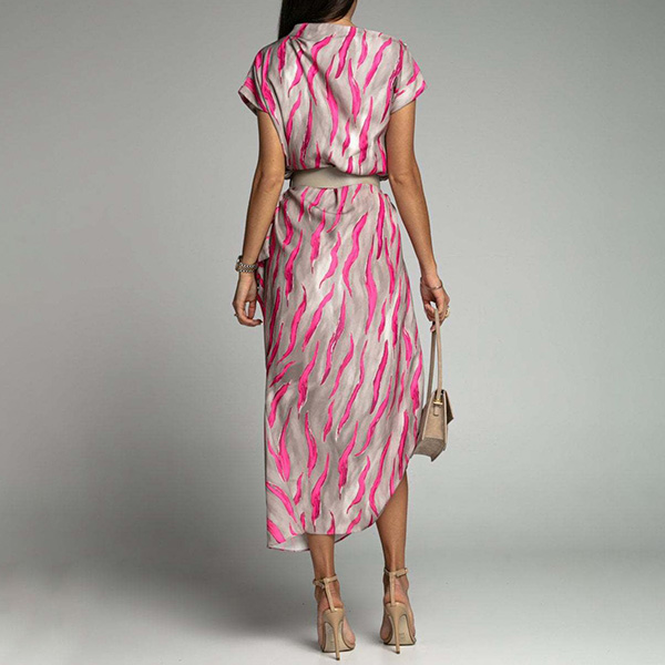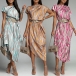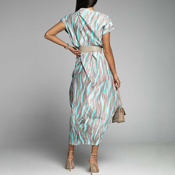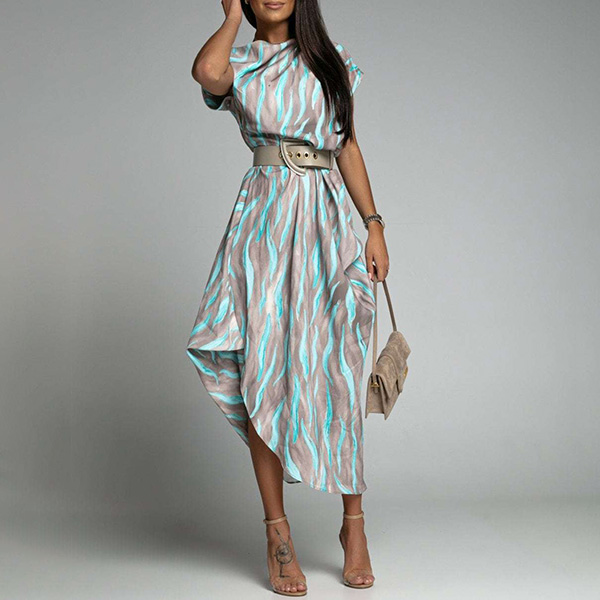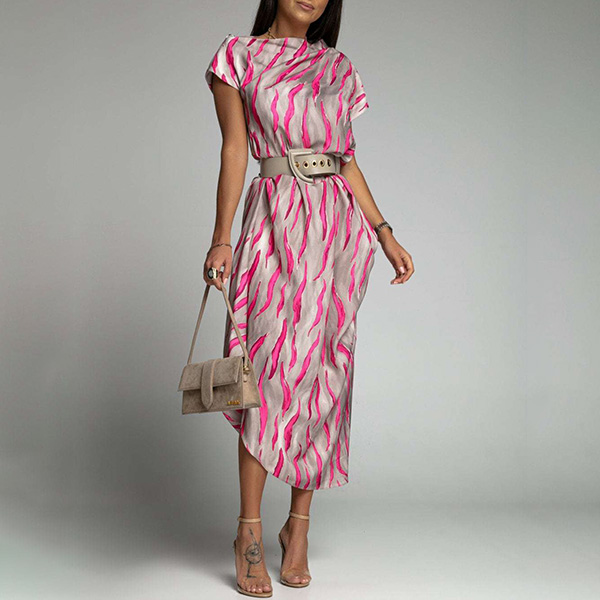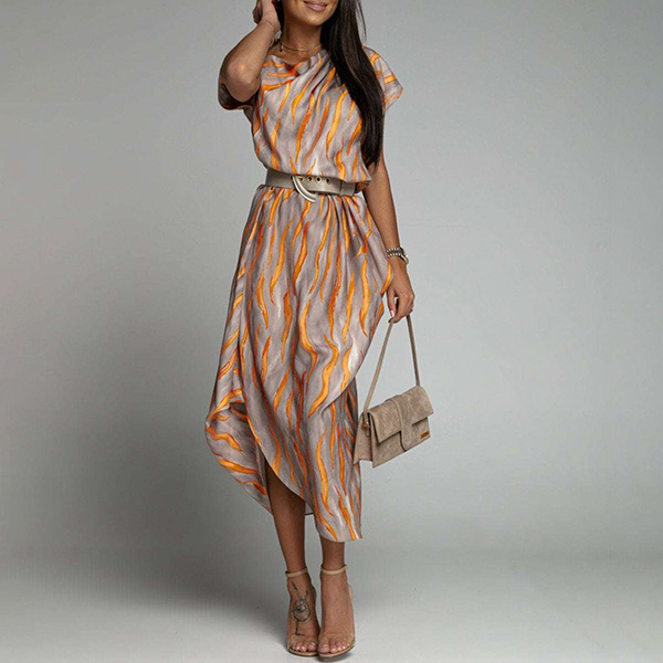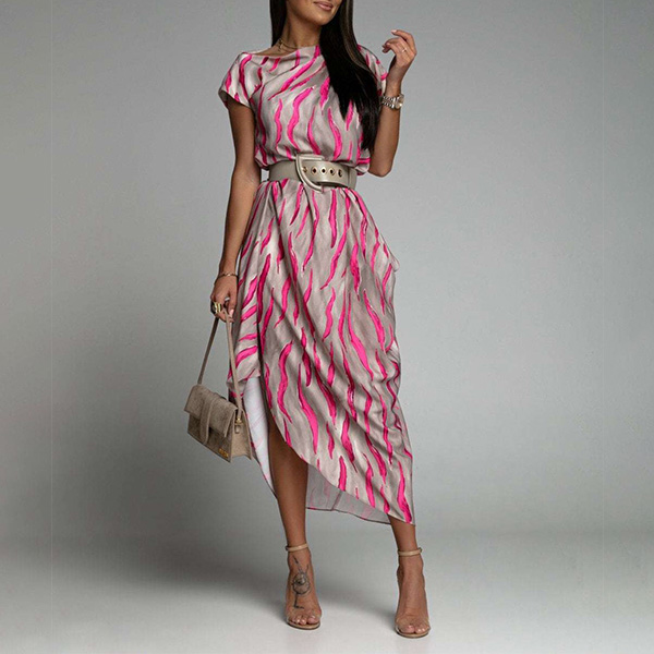 Fashion Contrast Color Printed Irrgular Hemline Midi Dress