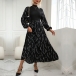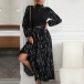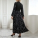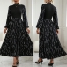 Fashion Contrast Color Printed Mock Neck Long Sleeve High-rise Midi Dress
