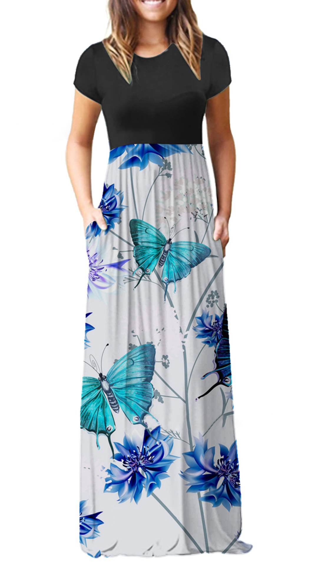 This dress is designed with high waist and a maxi length,which can showcase your slender figure. Finished with short sleeve,round neck and contrast color printed element,which will further enhance the entire charm of this dress. For the summer days,this dress is worth to be your wardrobe staple.