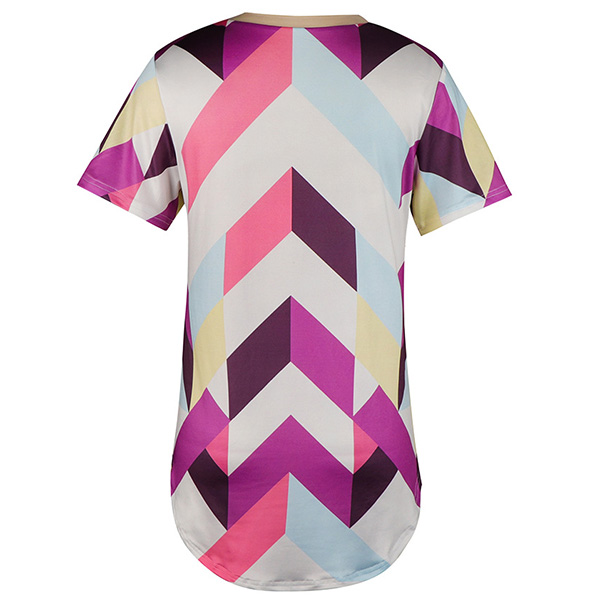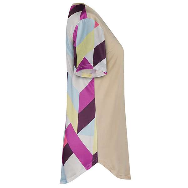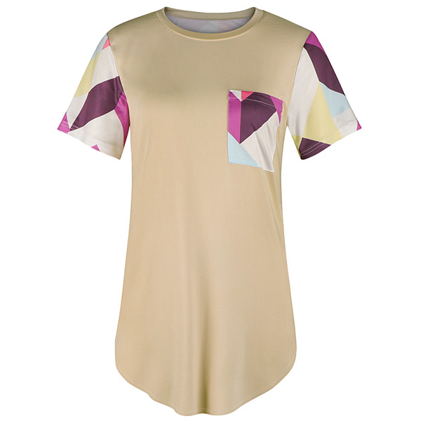 Fashion Contrast Color Printed Short Sleeve Round Neck T-shirt