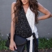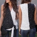 In these hot summer days,this sleeveless top is worth to be your wardrobe staple. Contrast color element and chic printed details make this piece look so eye-catching,while the v-neck and lace-up hem design will further enhance its charm. Like it? Then why not take interest in it?