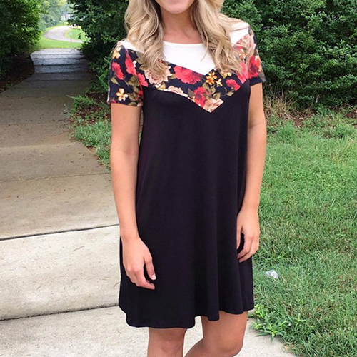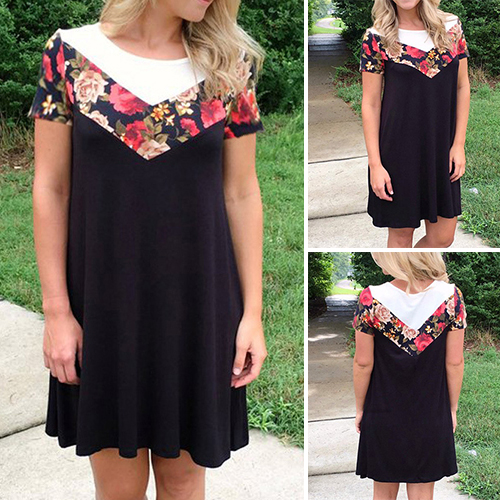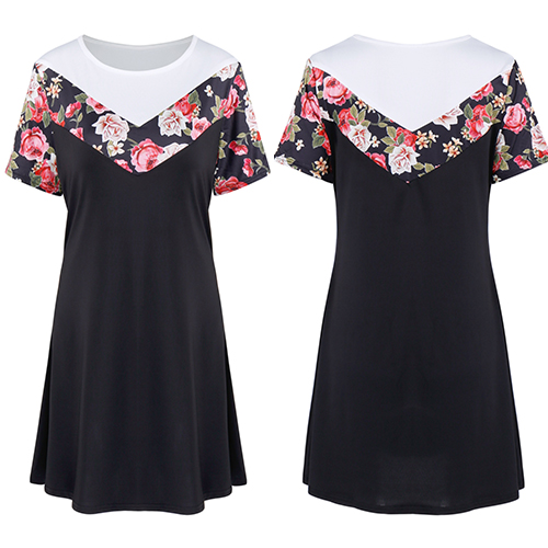 Add a touch of laid-back personality to your wardrobe with this dress. Contrast color style with printed spliced details