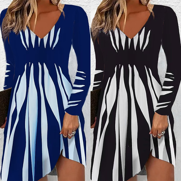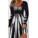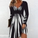 Fashion Contrast Color Printed V-neck Long Sleeve Mini Dress