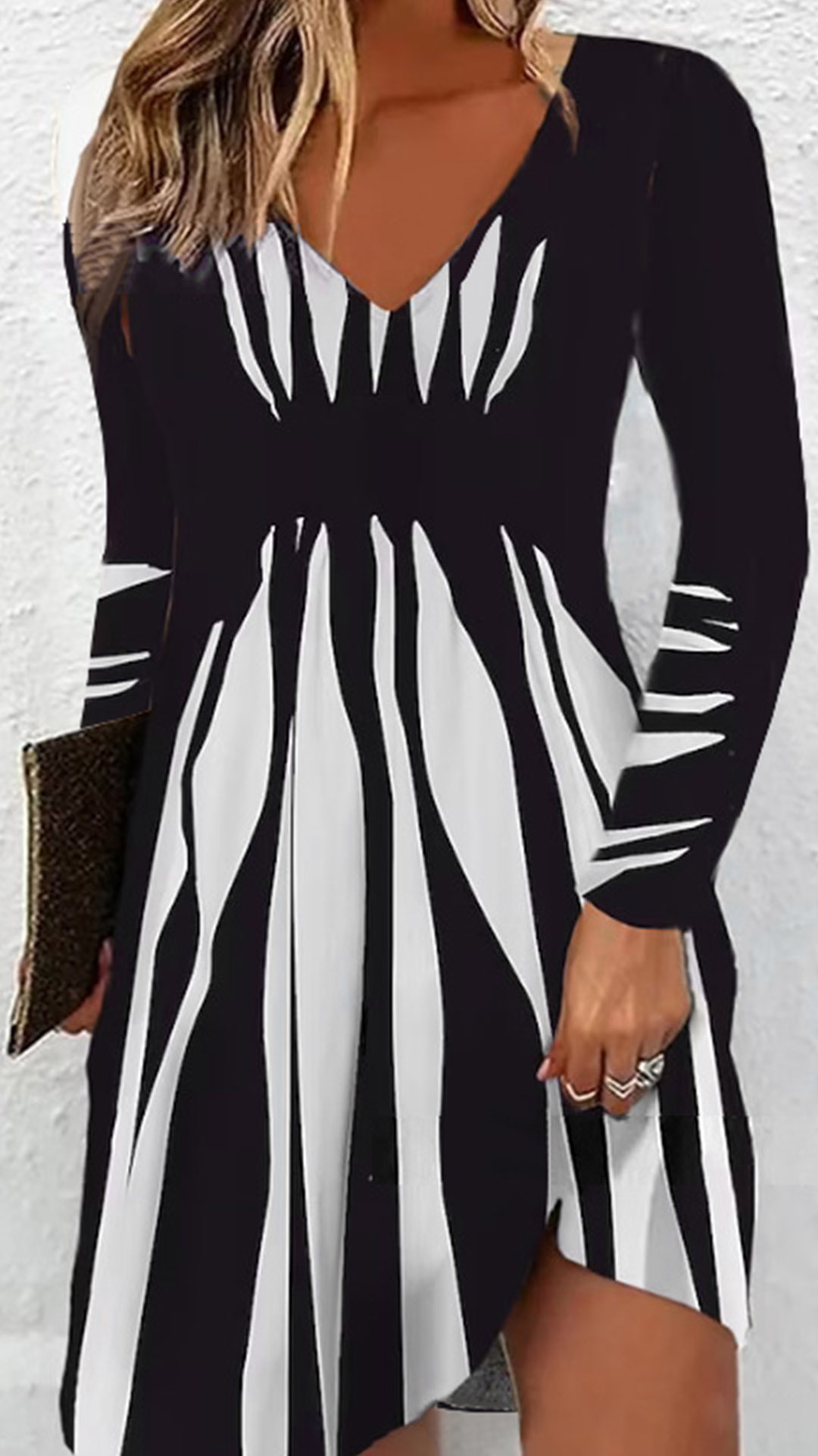 Designed to stand out, this dress features a contrast color pattern that adds a bold and dynamic touch to the overall look. Wanna have a try?