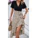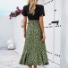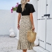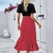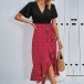 Fashion Contrast Color Printed V-neck Short Sleeve Ruffle Irregular Hemline Self-tie Mini Dress