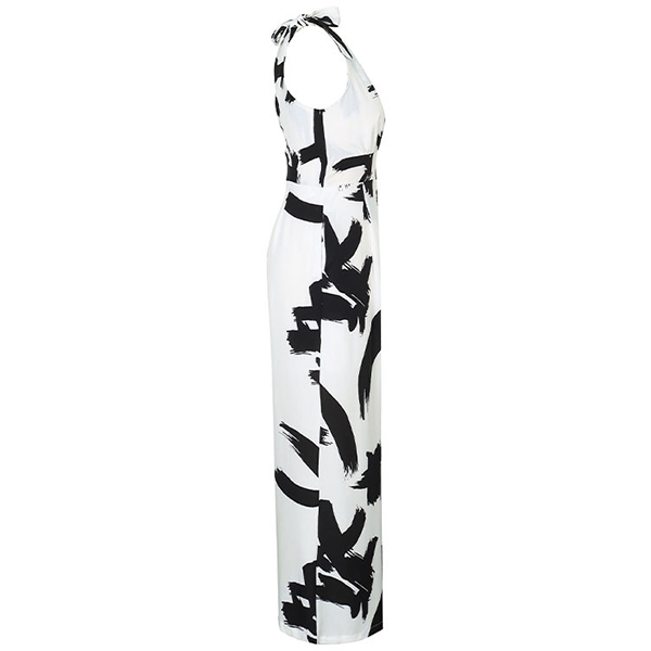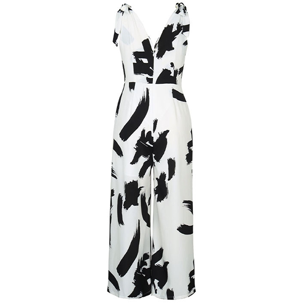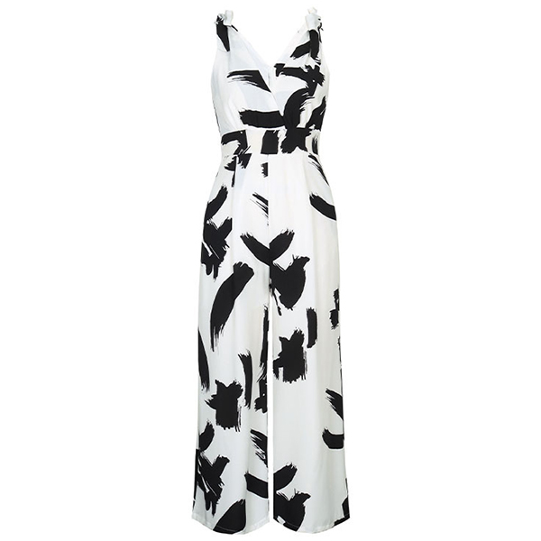 Fashion Contrast Color Printed V-neck Sleeveless Jumpsuit