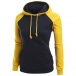 Contrast color style,outfitted with raglan sleeve,a drawstring hood and a kangaroo pocket,