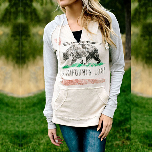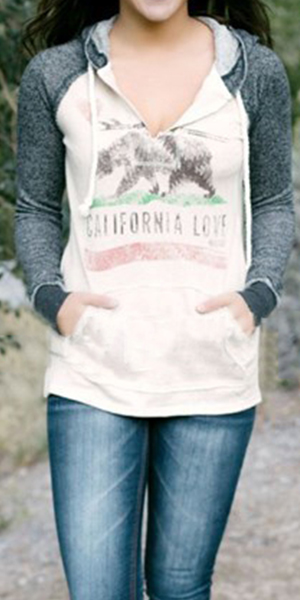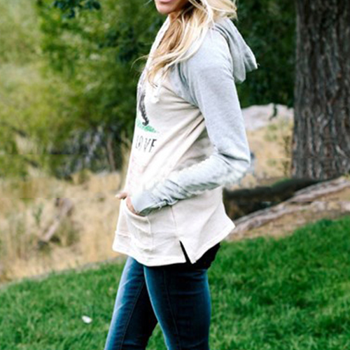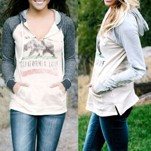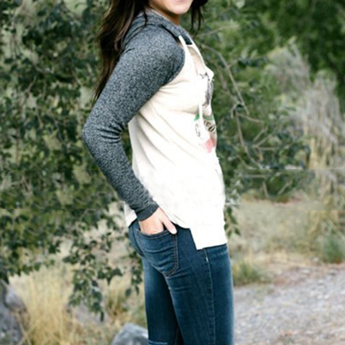 Fashion Contrast Color Raglan Sleeve V-neck Printed Hoodies