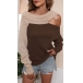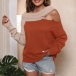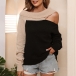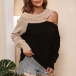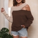 Fashion Contrast Color Rolled Round Neck Open-shoulder Long Sleeve Pullover Sweater
