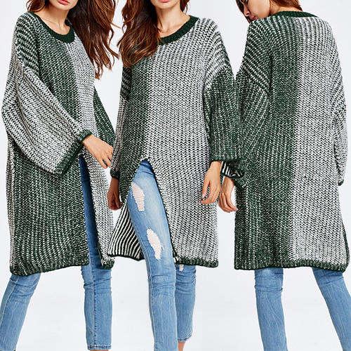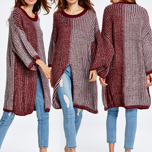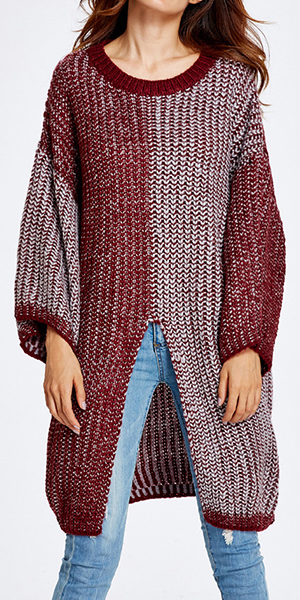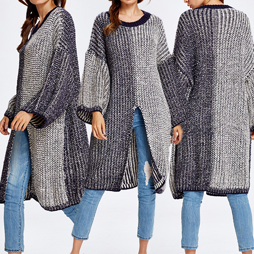 Classic contrast color style, accompanied by round neck, long sleeve and front slit design; it completely