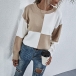 Fashion Contrast Color Round Neck Long Sleeve Knit Top