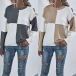Compared with solid color knit top, this contrast color piece is not so monotonous. They are more peaceful and quiet and give people a comfortable feeling. Designed with contrast color, which will strike your mind. It is the piece which will never be out of date. Why not take it away now right?