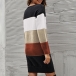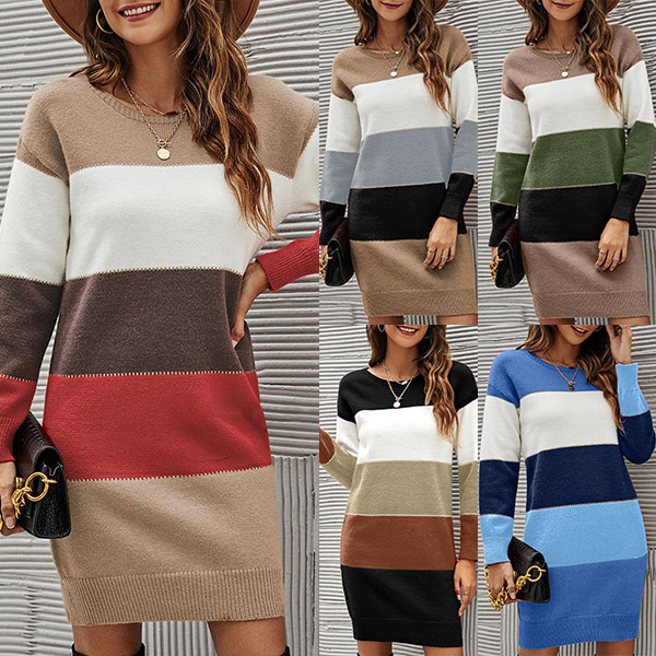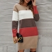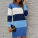 Fashion Contrast Color Round Neck Long Sleeve Knitted Dress