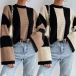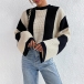 Fashion Contrast Color Round Neck Long Sleeve Knitted Sweater