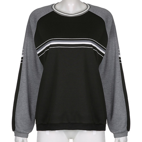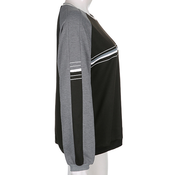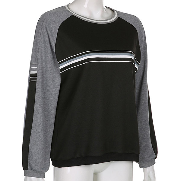 Fashion Contrast Color Round Neck Long Sleeve Pullover Sweatshirt