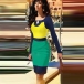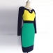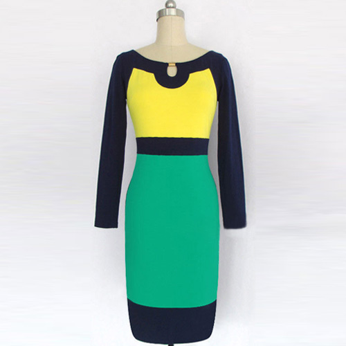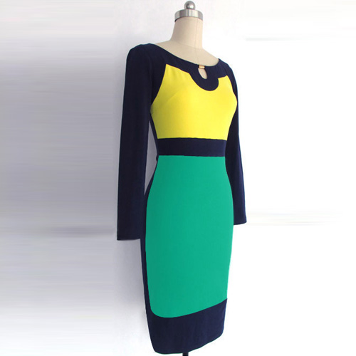 Fashion Contrast Color Round Neck Long Sleeve Slim Fit Dress