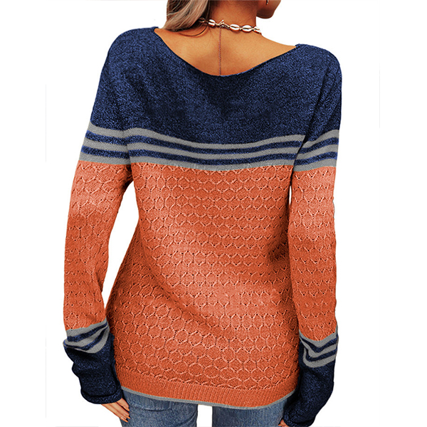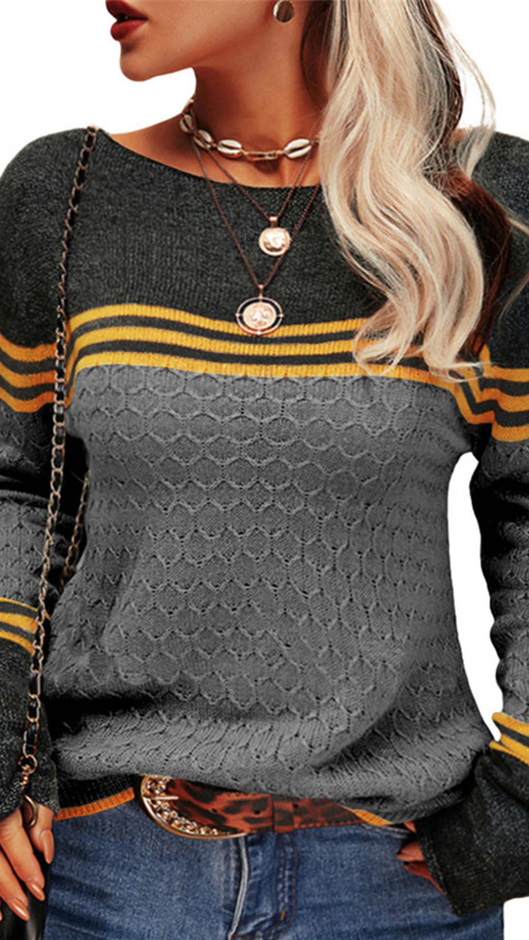Fashion Contrast Color Round Neck Long Sleeve Sweater