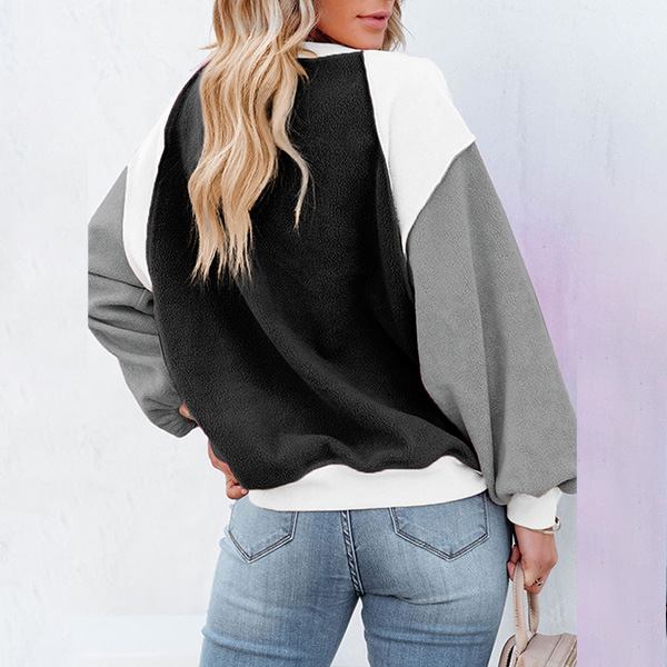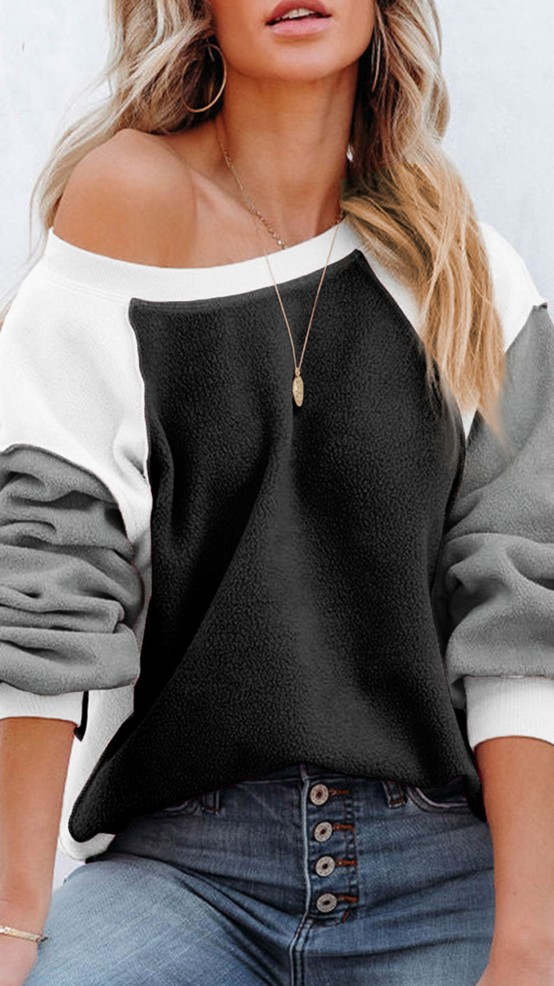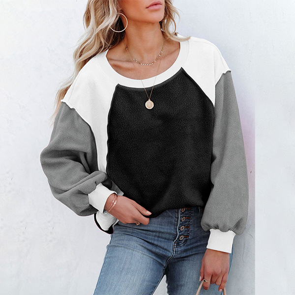 Fashion Contrast Color Round Neck Long Sleeve Sweatshirt