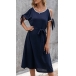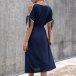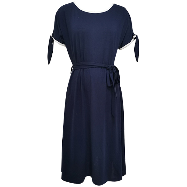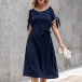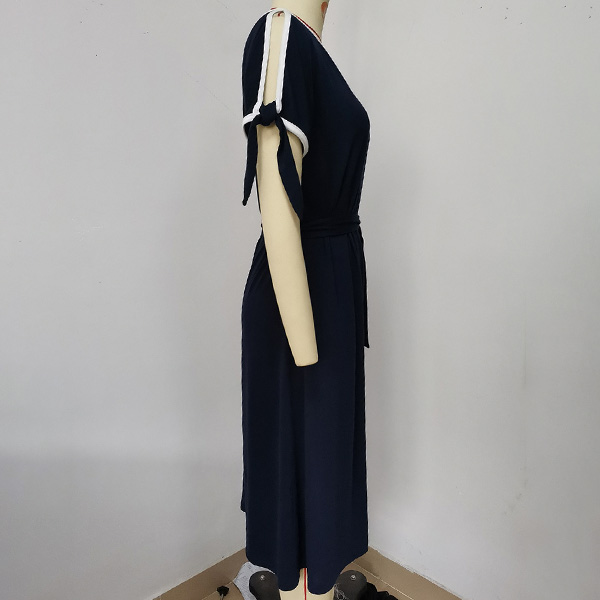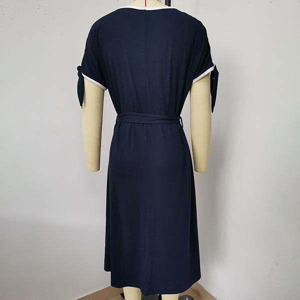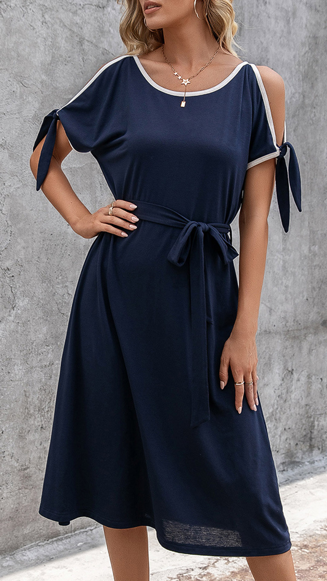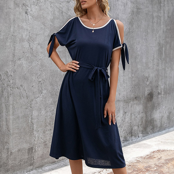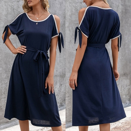 Fashion Contrast Color Round Neck Open-shoulder Self-tie Midi Dress