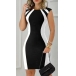 Fashion Contrast Color Round Neck Sleeveless Bodycon Dress