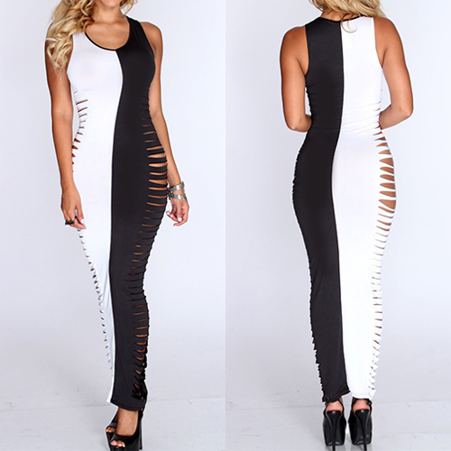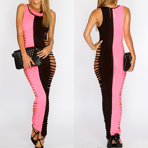 alluring appeal. Contrast color style, with round neck, sleeveless and side hollow out design,