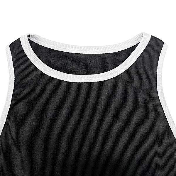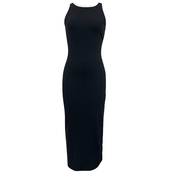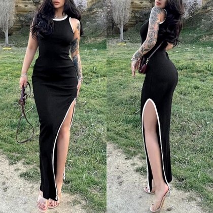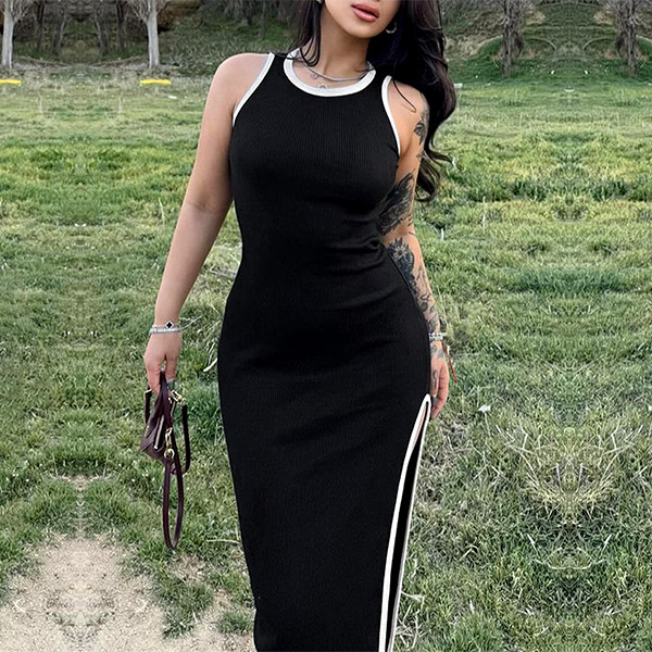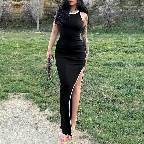Fashion Contrast Color Round Neck Sleeveless Side Slit Bodycon Tank Dress