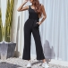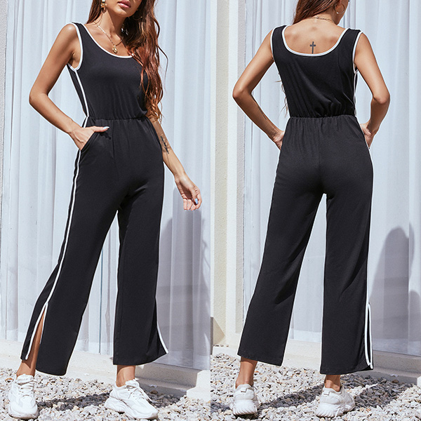 Fashion Contrast Color Round Neck Sleeveless Side Slit Jumpsuit