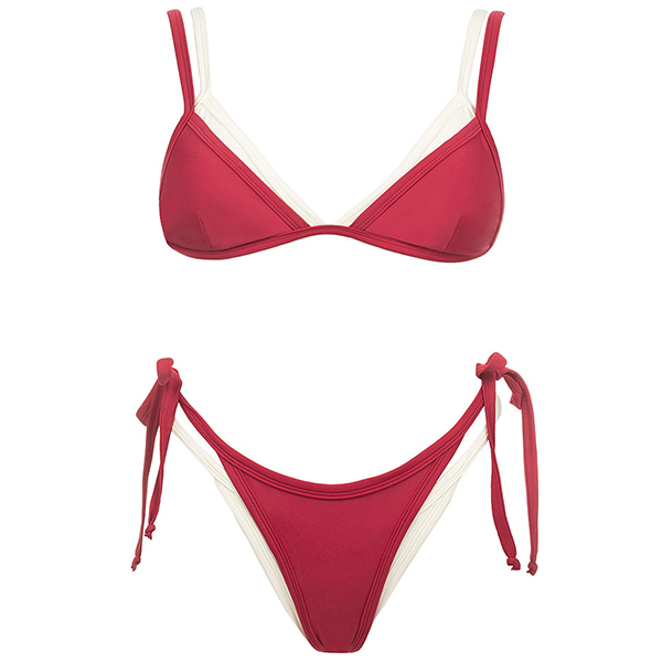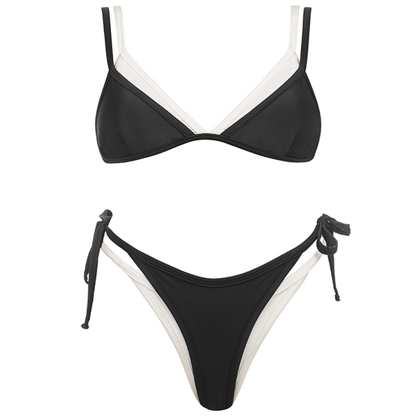 Fashion Contrast Color Self-tie Bikini Set