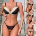 Fashion Contrast Color Semi-through Gauze Spliced Two-piece Lingerie Set