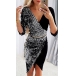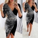 This dress is perfect for a woman who wants to make a statement. The contrast colors of the sequins are eye-catching and unique. The long sleeves and V-neck make it a flattering and elegant dress. The dress is also comfortable to wear and is perfect for any formal or semi-formal event.