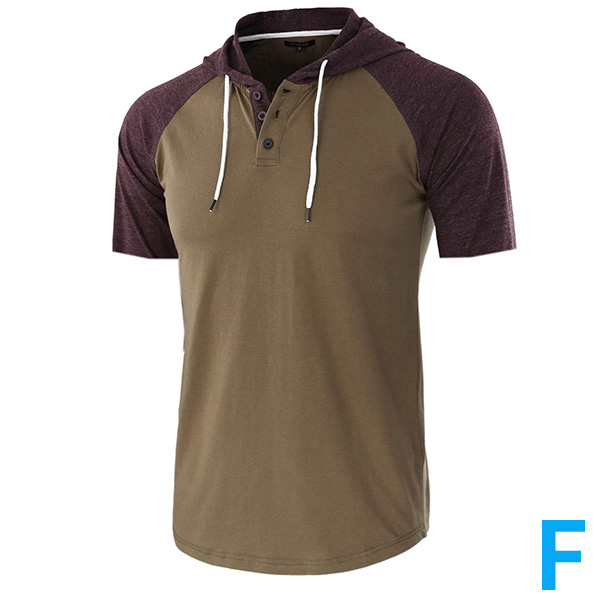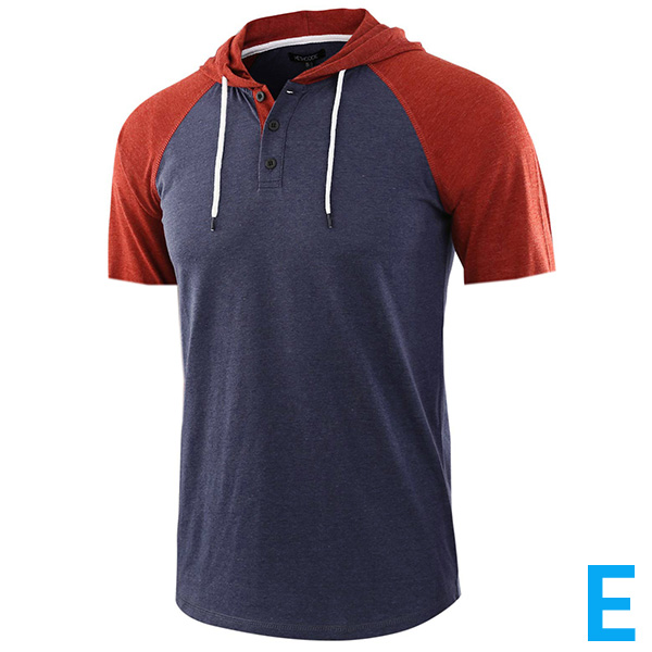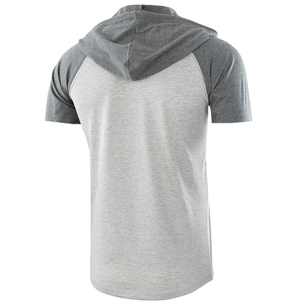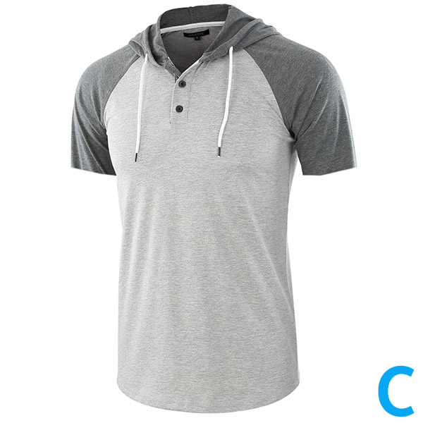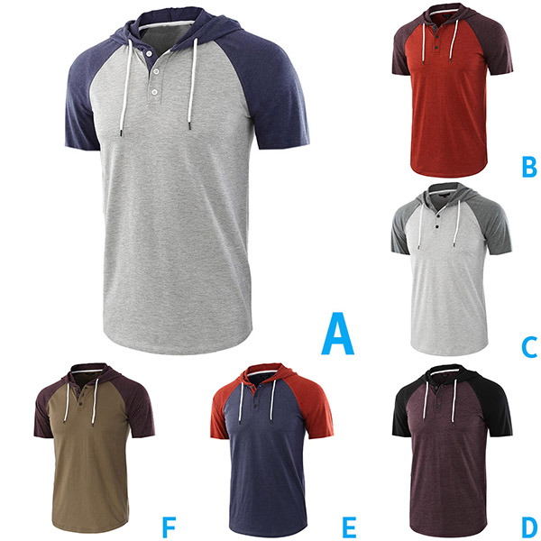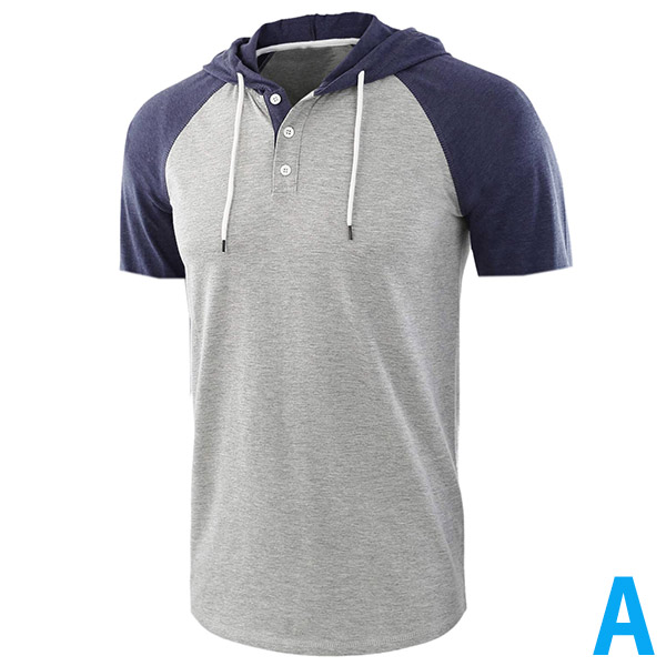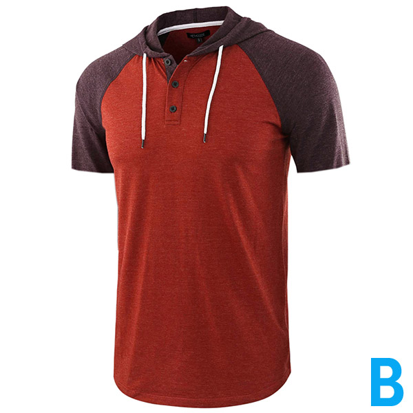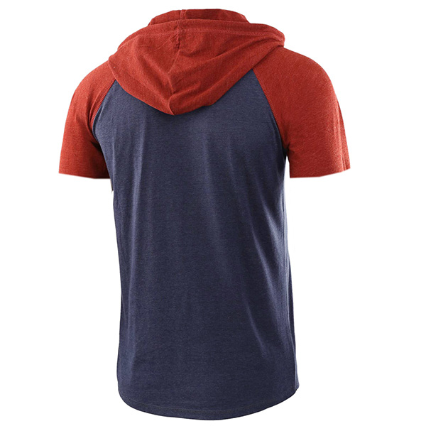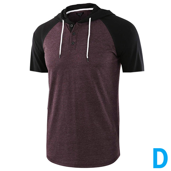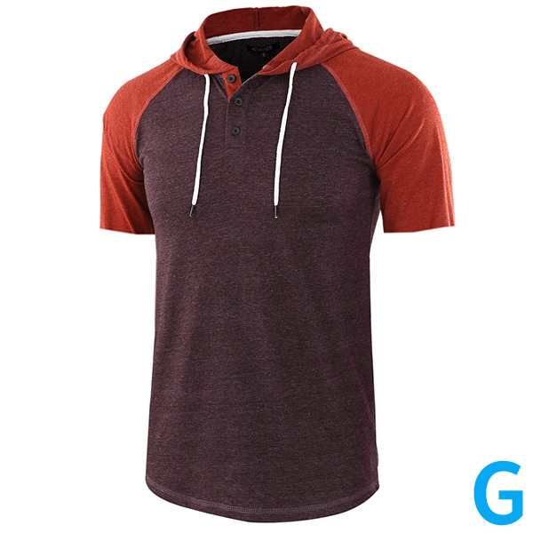 Fashion Contrast Color Short Sleeve Hooded Shirt for Men