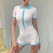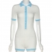 Fashion Contrast Color Short Sleeve POLO Collar Slim Fit Romper