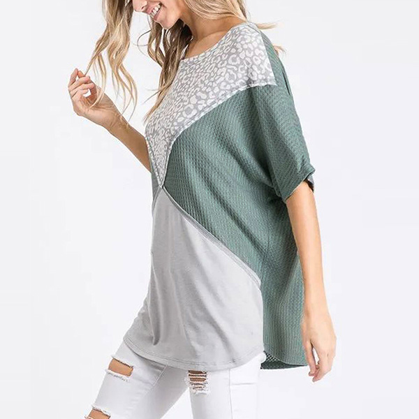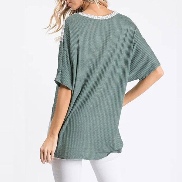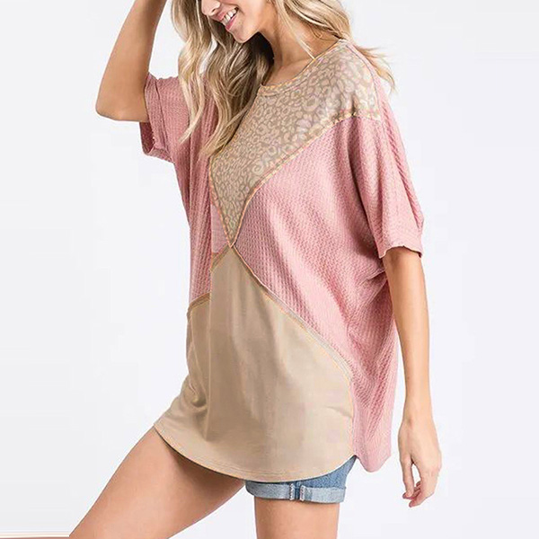 Fashion Contrast Color Short Sleeve Round Neck Loose T-shirt