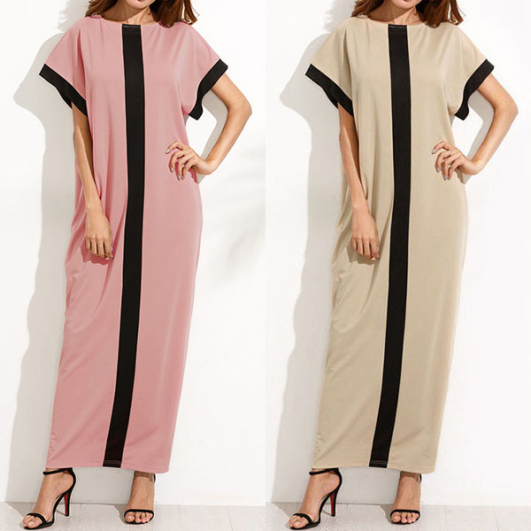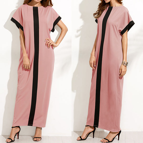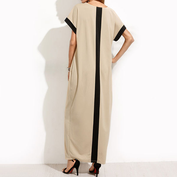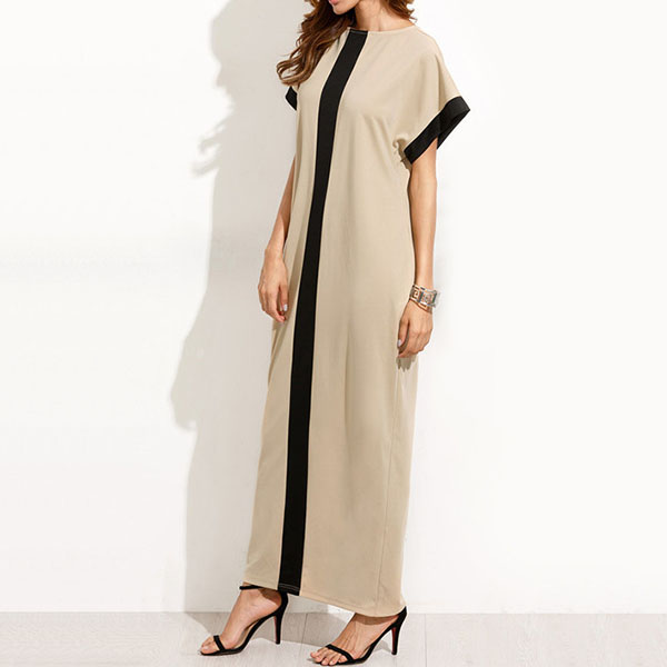 Contrast color style,tailored with short sleeve,round neck,a maxi length and a clean silhouette,this dress can give you