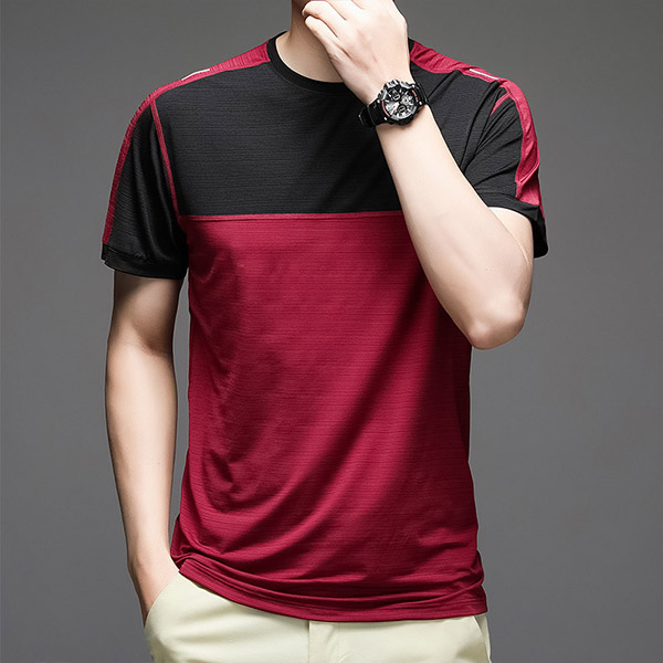 Fashion Contrast Color Short Sleeve Round Neck Men's T-shirt