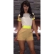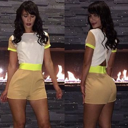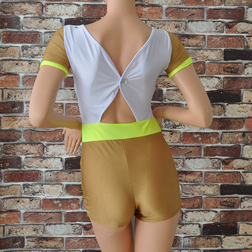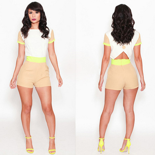Contrast color style,with short sleeve and round neck design,backside hollow out