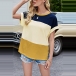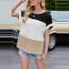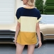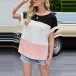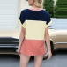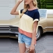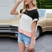 Fashion Contrast Color Short Sleeve Round Neck Slit Hem T-shirt Top