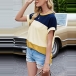 As we all know,contrast color element will nerve be out of fashion. So catch up with this trend with the help of this t-shirt. Crafted from soft and breathable fabric,with short sleeve and round neck design,this piece can ensure you a comfortable day. Meanwhile,the slit hem design will add some extra charm. No matter matching with a shorts,skirt or jeans,you can hardly go wrong!