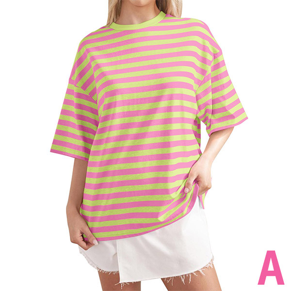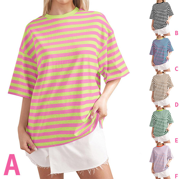 Fashion Contrast Color Short Sleeve Round Neck Striped T-shirt