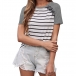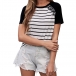 Like stripe element? Then you can have a look at this t-shirt. Combines of contrast color and lace element,which will make this t-shirt look more stylish and attractive. Finished with short sleeve and round neck design,this t-shirt also can give you a comfortable day. All-match design allows to be matched with different style bottoms.