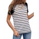 Fashion Contrast Color Short Sleeve Round Neck Striped T-shirt