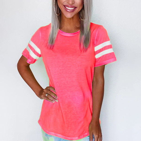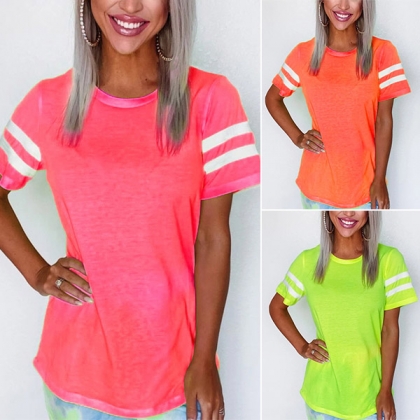 Fashion Contrast Color Short Sleeve Round Neck T-shirt
