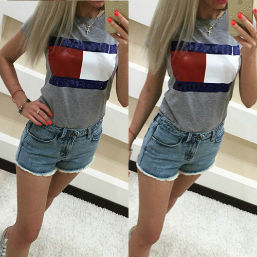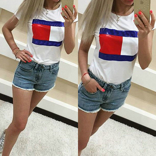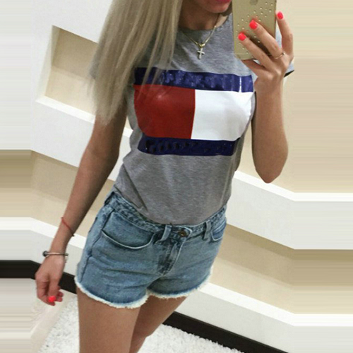 This t-shirt features contrast color style,with short sleeve,round neck and breathable fabric,simple