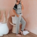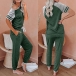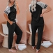 Fashion Contrast Color Short Sleeve T-shirt + Pants Casual Two-piece Set