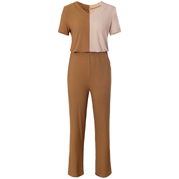Fashion Contrast Color Short Sleeve T-shirt + Pants Two-piece Set