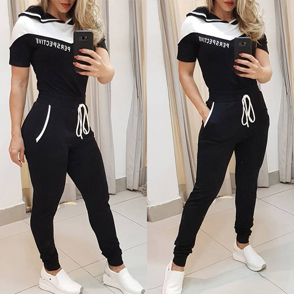 Fashion Contrast Color Short Sleeve Top + Pants Two-piece Set