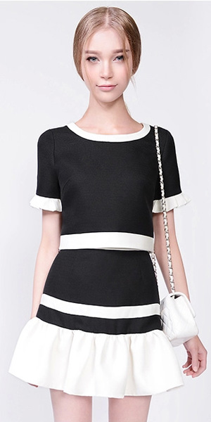 This two-piece set is a perfect choice for those people who don't know how to match. Combination of black and white,